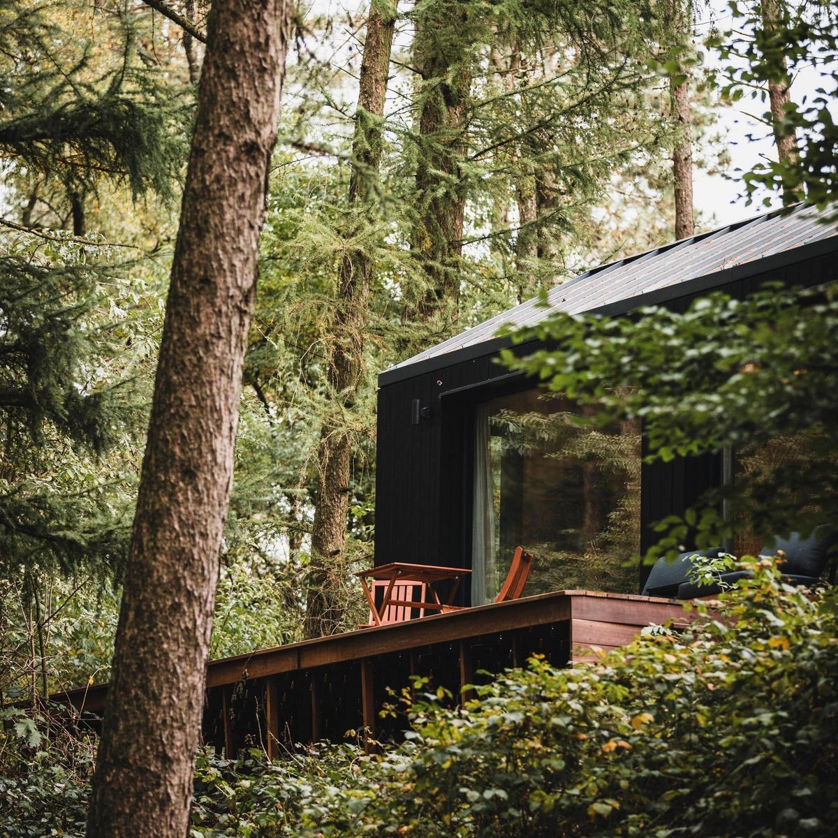 Die Cabin liegt auf einem weitläufigen Gelände mit natürlicher Ausstrahlung. Die Umgebung ist grün und ruhig gestaltet, mit viel Augenmerk auf Privatsphäre und landschaftliche Einbindung. Einrichtungen befinden sich in kurzer Entfernung, während die unmittelbare Umgebung rund um die Cabin zum Abschalten einlädt.