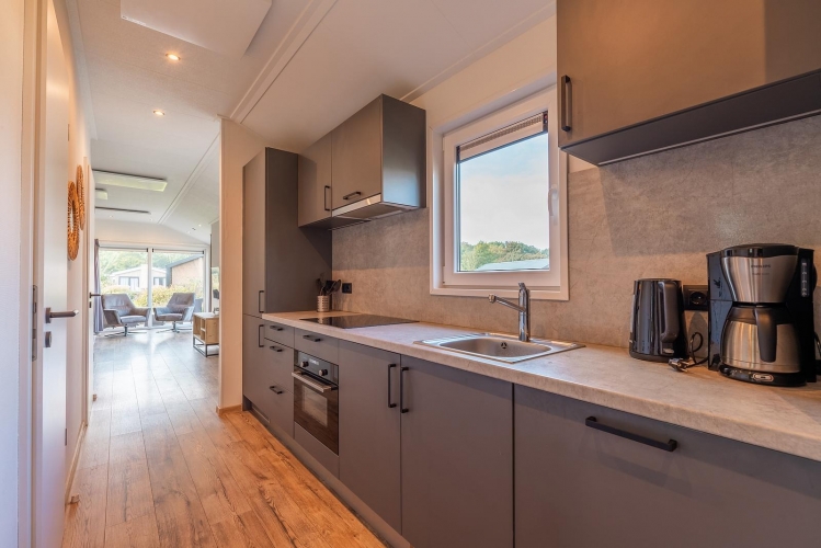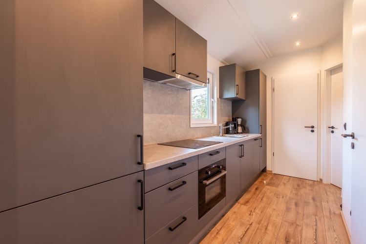 Die offene Küche schließt nahtlos an den Wohnbereich an und ist vollständig für den täglichen Komfort ausgestattet. Ihnen stehen ein Geschirrspüler, eine Kombi-Mikrowelle, eine Kühl-Gefrierkombination, eine Kaffeemaschine, eine Filterkaffeemaschine, ein Wasserkocher sowie das notwendige Küchen- und Kochzubehör zur Verfügung. Alles ist vorhanden, um einfach oder auch umfangreicher zu kochen.
