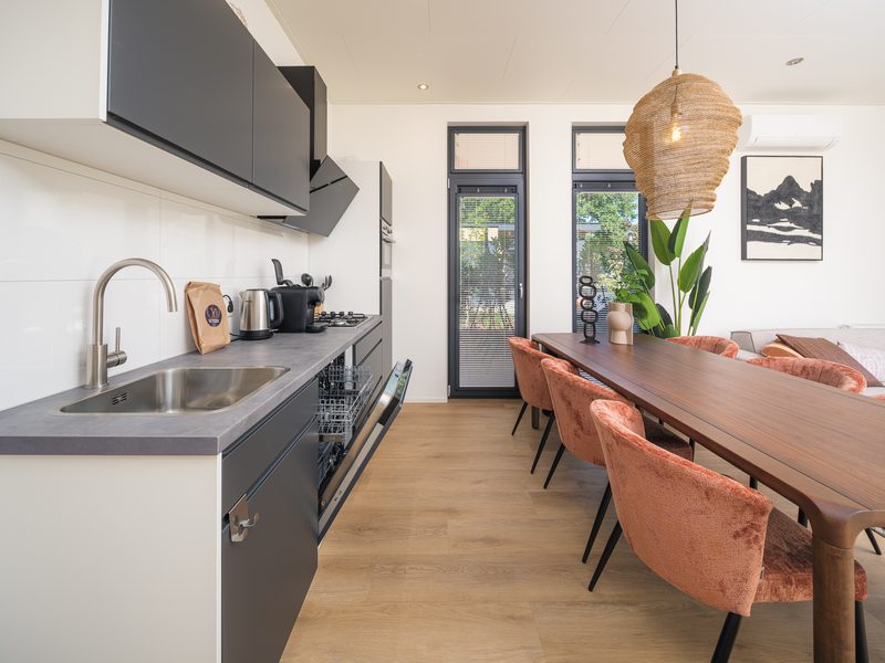 Bij binnenkomst in de Essenburgh wordt u begroet door een ruime, sfeervolle woonkamer die uitnodigt om te ontspannen. Of u nu kiest voor een gezellige avond met uw dierbaren of een moment van rust na een dag vol avontuur, deze ruimte biedt het perfecte decor voor uw vakantie. De open keuken is volledig uitgerust met moderne apparatuur zoals een vaatwasser, combigagnetron en een 4-pits gasfornuis, waardoor u zich geen zorgen hoeft te maken over maaltijden. Hier kunt u zowel een snel ontbijt als een uitgebreid diner bereiden voor uw gezelschap.
