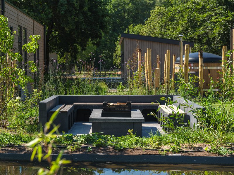 De zitlounge met buitenhaard is de ideale plek om de avond door te brengen, met een sfeervolle omgeving in de frisse buitenlucht. Geniet van een goed boek, een drankje met vrienden, of de gezelligheid van de buitenhaard tijdens een frisse avond. Deze luxe toevoeging zorgt voor de perfecte sfeer en maakt van elke avond een bijzonder moment.