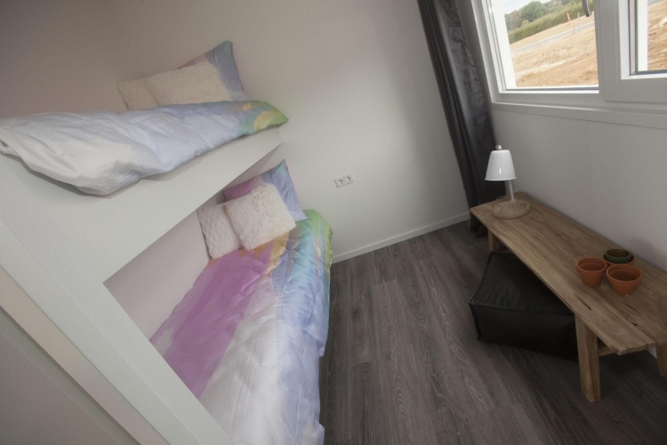 Dieses gemütliche Ferienhaus von 50 m² bietet alles, was du für einen angenehmen Aufenthalt benötigst. Es verfügt über ein gemütliches Wohnzimmer mit offener Küche, die vollständig ausgestattet ist mit einem Kombi-Mikrowellenherd, Geschirrspüler, Filterkaffeemaschine, Wasserkocher und Toaster. So kannst du deine eigenen köstlichen Mahlzeiten zubereiten. Das Wohnzimmer bietet ausreichend Platz zum Entspannen und Genießen der Ruhe. Vom Wohnzimmer aus gelangst du zu den beiden Schlafzimmern, die komfortabel eingerichtet sind, entweder mit 2 Einzelbetten oder einem Etagenbett und 2 Einzelbetten. Das Badezimmer ist ausgestattet mit einer Dusche, Toilette und Waschbecken. Im Sommer sorgt die Klimaanlage für ein angenehmes, kühles Raumklima. Das Ferienhaus verfügt auch über eine Terrasse mit Gartenmöbeln, ideal um draußen das schöne Wetter zu genießen.