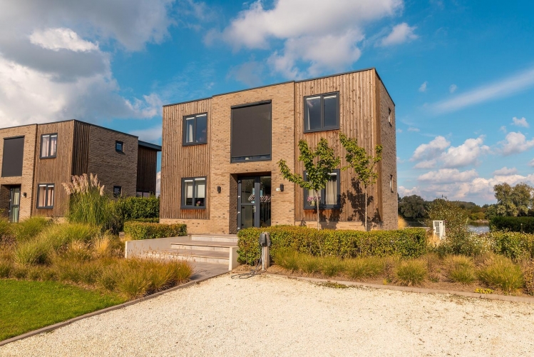 Die Villa verfügt über einen großzügigen Garten mit Terrasse, Gartenmöbeln und Sonnenschirm. Dank der Lage am äußeren Rand des Parks und direkt am Wasser genießen Sie hier viel Ruhe, Privatsphäre und einen freien Blick auf die Maas. Die Terrasse ist ein schöner Ort, um draußen zu sitzen, die Sonne zu genießen oder den Tag entspannt ausklingen zu lassen.