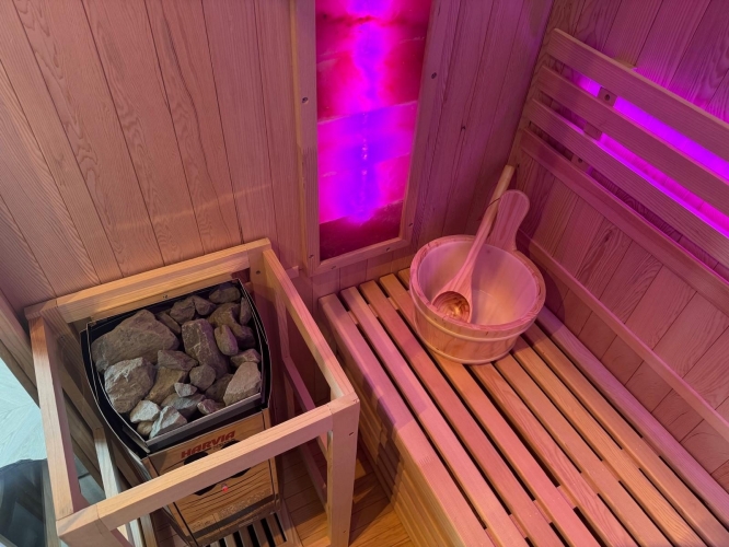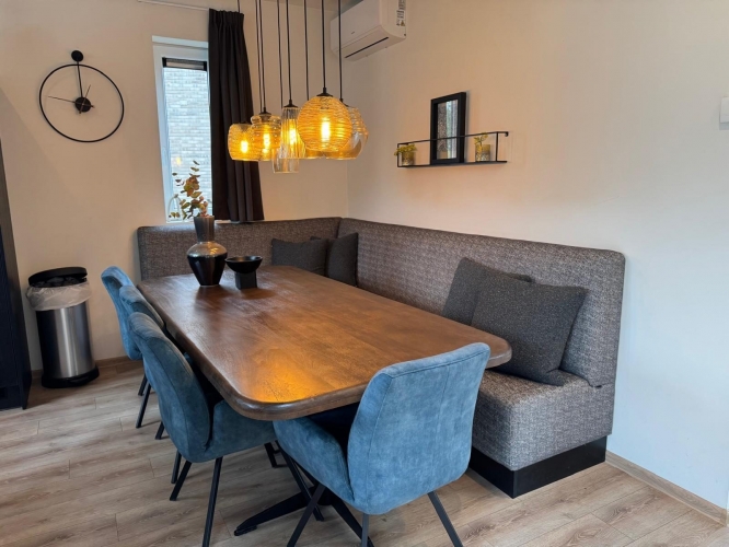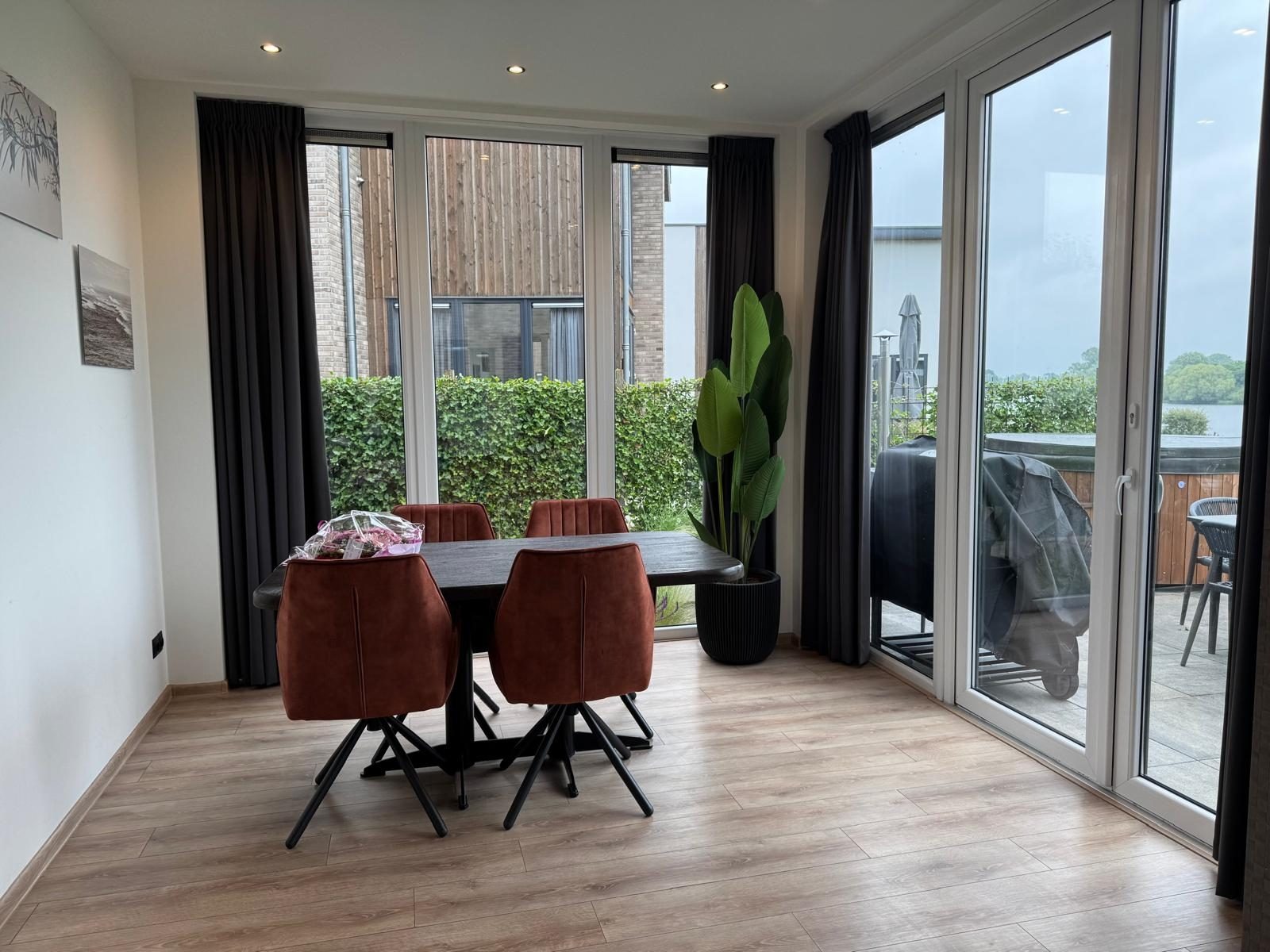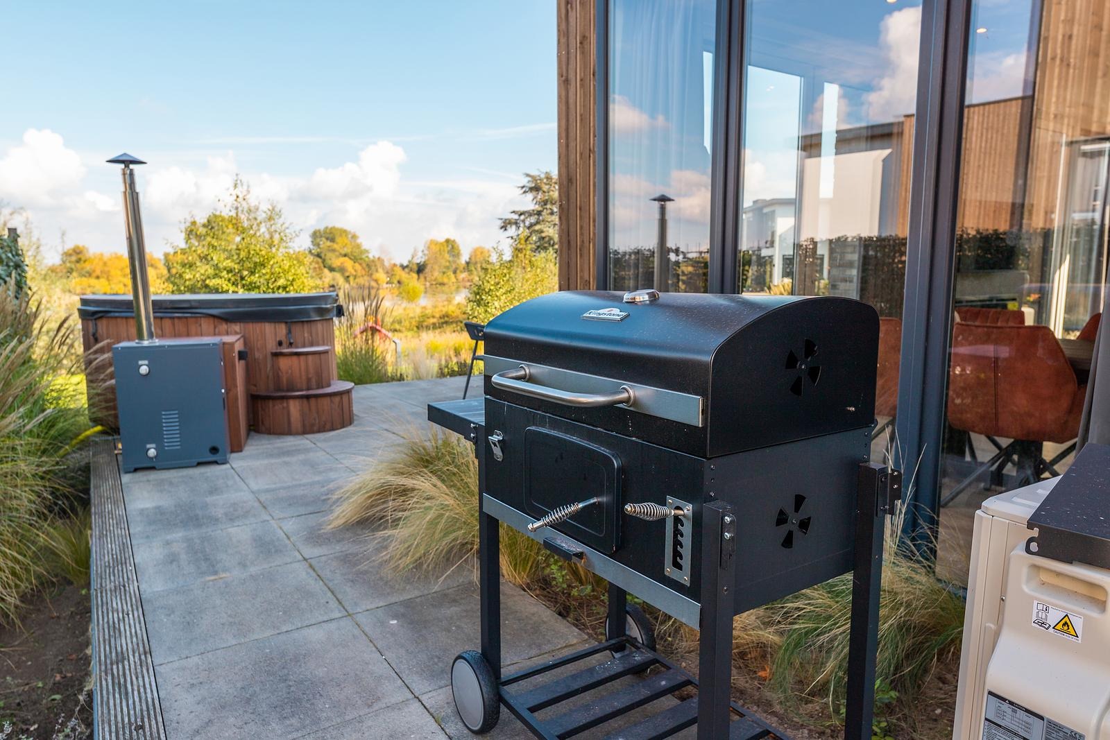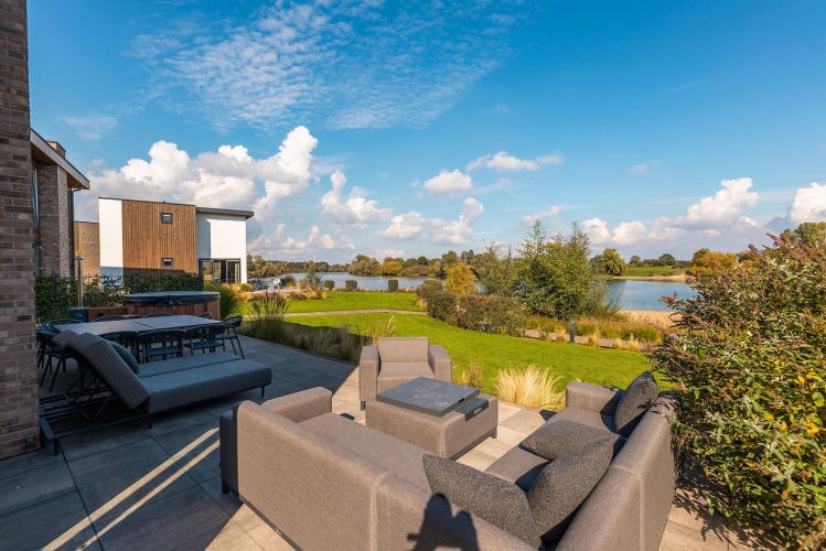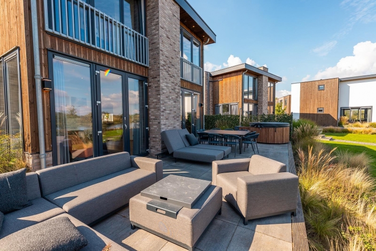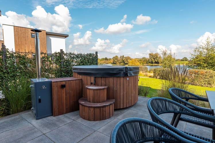 Die Wellness-Einrichtungen machen den Aufenthalt besonders. Entspannen Sie in der traditionellen Sauna oder genießen Sie die Hottub mit Blick auf die Maas. Der großzügige Garten ist mit Terrasse, Loungemöbeln, Sonnenliegen und einem Grill ausgestattet – ideal für entspannte Stunden am Wasser.