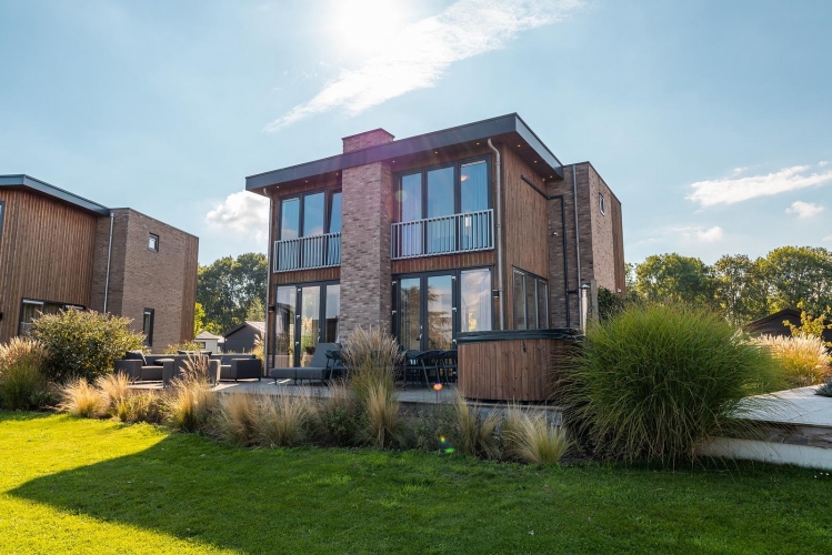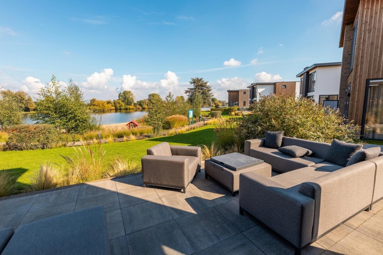 Rund um die Villa genießen Sie Ruhe, Weite und Privatsphäre. Der Außenbereich ist mit einer Terrasse und komfortablen Gartenmöbeln ausgestattet, sodass Sie zu jeder Tageszeit draußen sitzen können. Durch die Lage am Wasser oder am äußeren Rand des Parks haben Sie einen freien Blick auf die natürliche Umgebung. Die großzügige Anordnung der Villa sorgt für eine entspannte Atmosphäre mit ausreichend Abstand zu anderen Unterkünften.