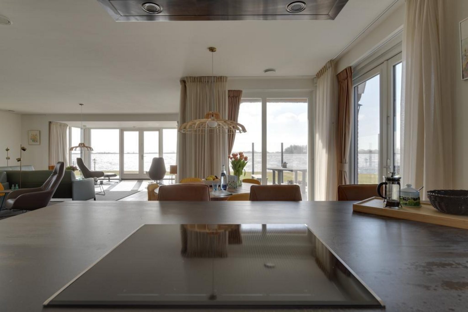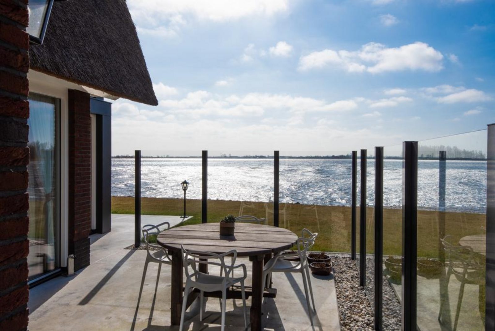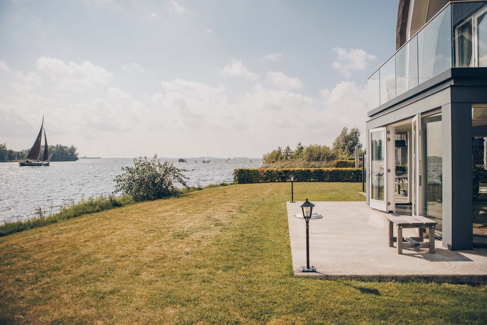 Die Villa liegt direkt am Wasser und ist von einem großzügigen, umzäunten Garten umgeben. Terrasse, Balkon und Wintergarten fangen von morgens bis abends die Sonne ein und bieten einen herrlichen Blick auf das Heegermeer.