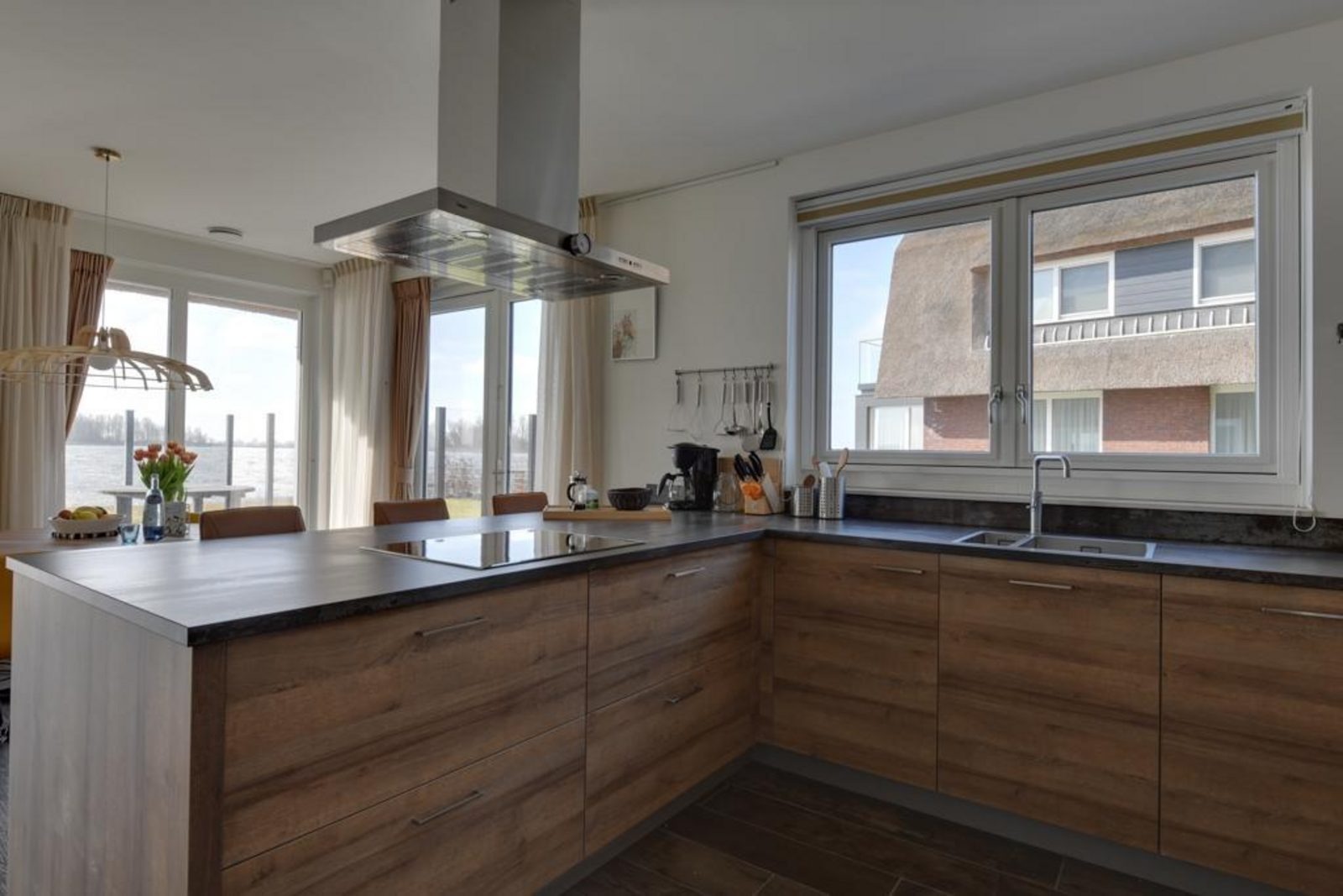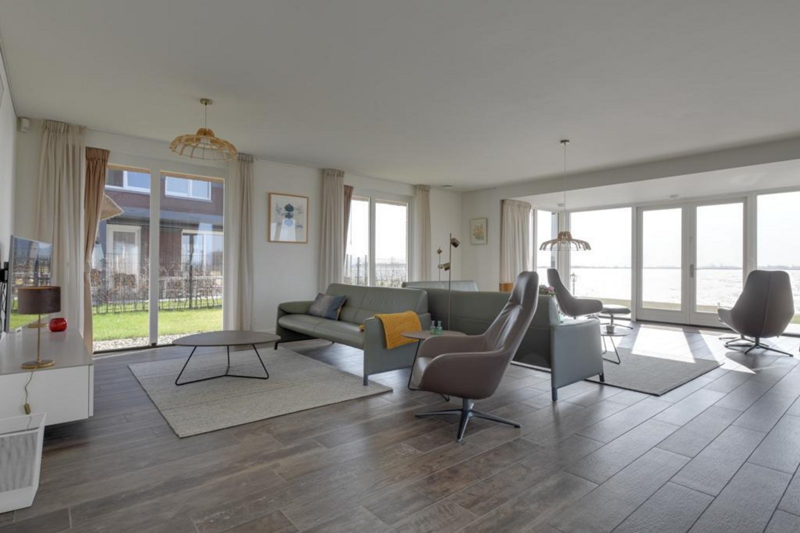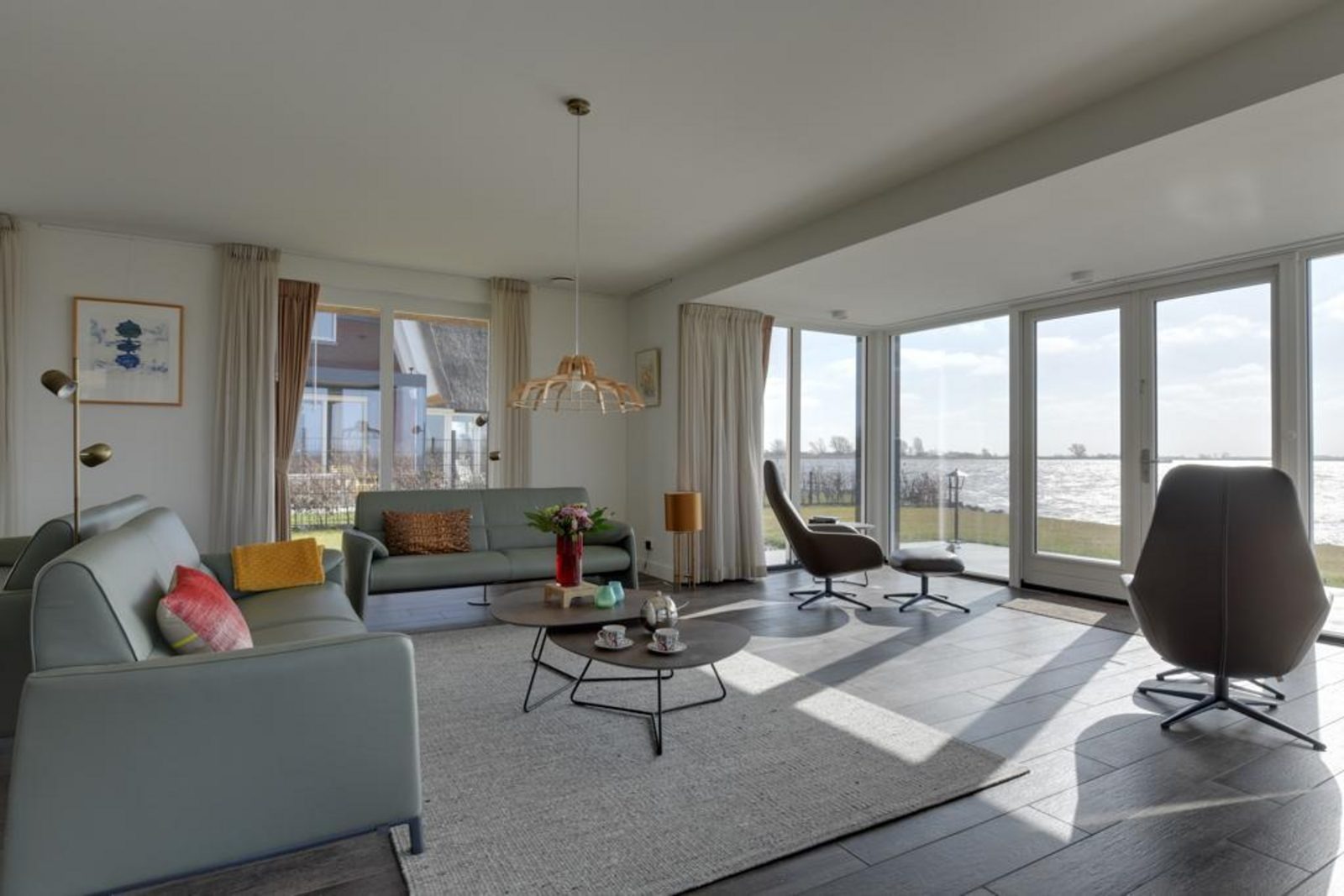 Die Villa liegt direkt am Wasser und ist von einem großzügigen, umzäunten Garten umgeben. Terrasse, Balkon und Wintergarten fangen von morgens bis abends die Sonne ein und bieten einen herrlichen Blick auf das Heegermeer.