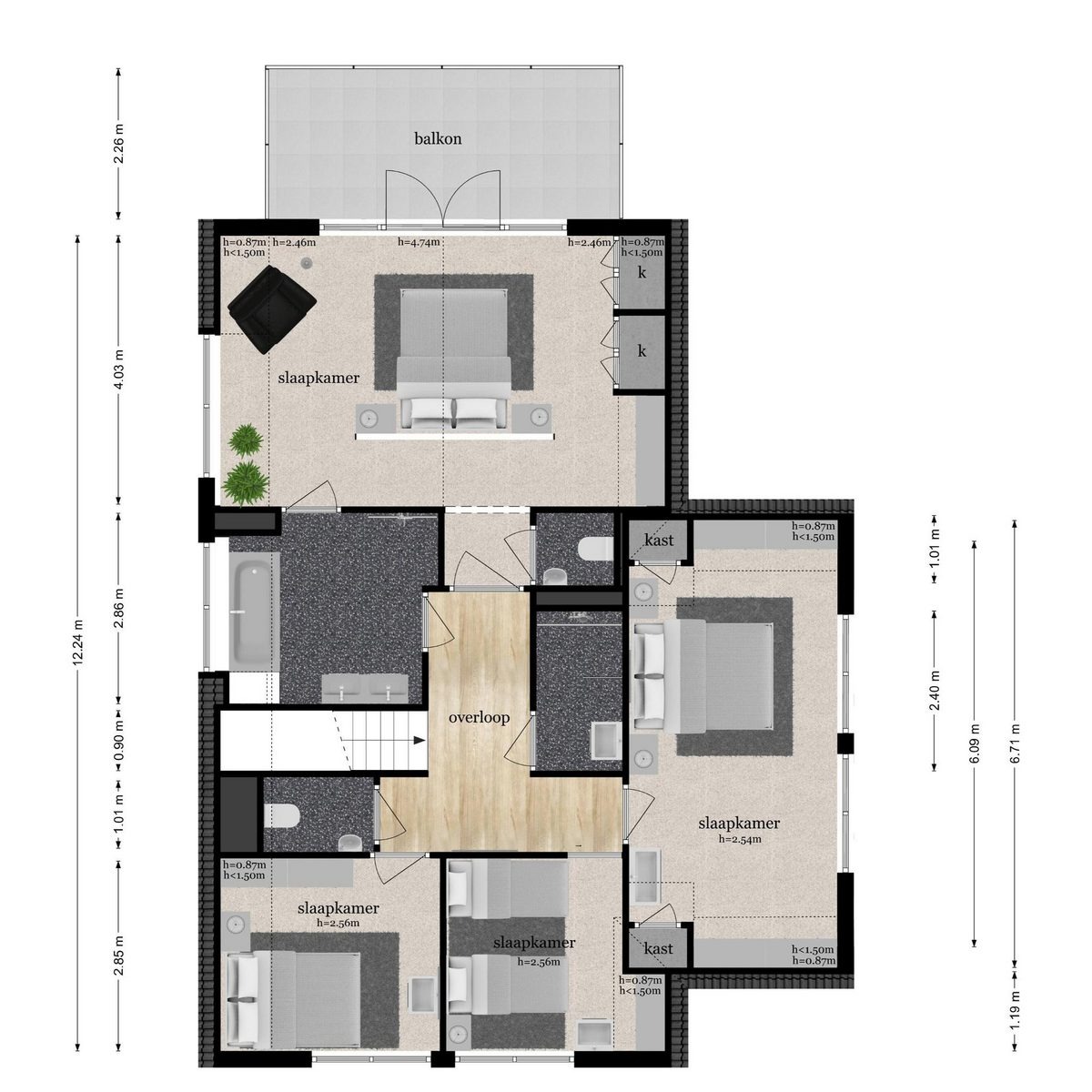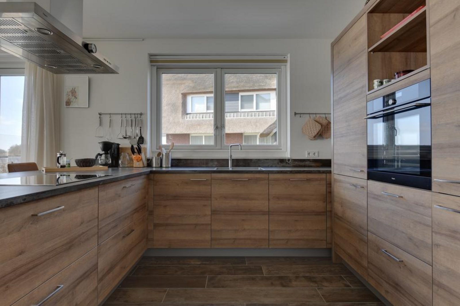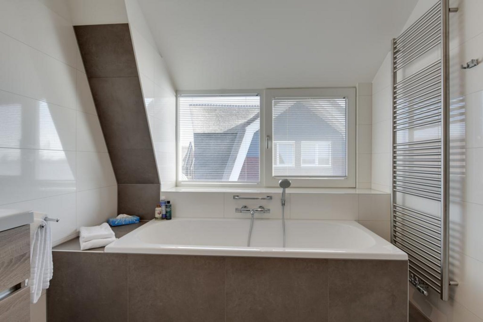 Die offene Küche ist vollständig ausgestattet mit einem 5-Zonen-Cerankochfeld, Kombi-Mikrowelle, Quooker, Geschirrspüler und einer großen Kühl-Gefrierkombination. Die Villa verfügt über drei Badezimmer sowie mehrere WCs im Erd- und Obergeschoss. Im Erdgeschoss befindet sich zudem eine private Sauna mit Dusche.