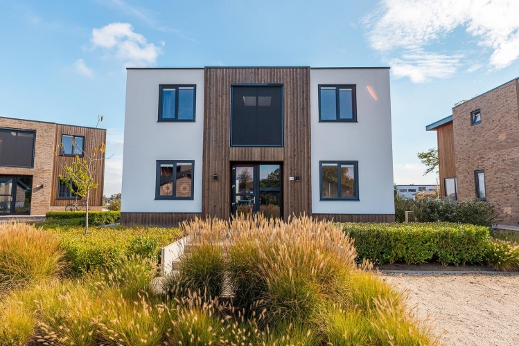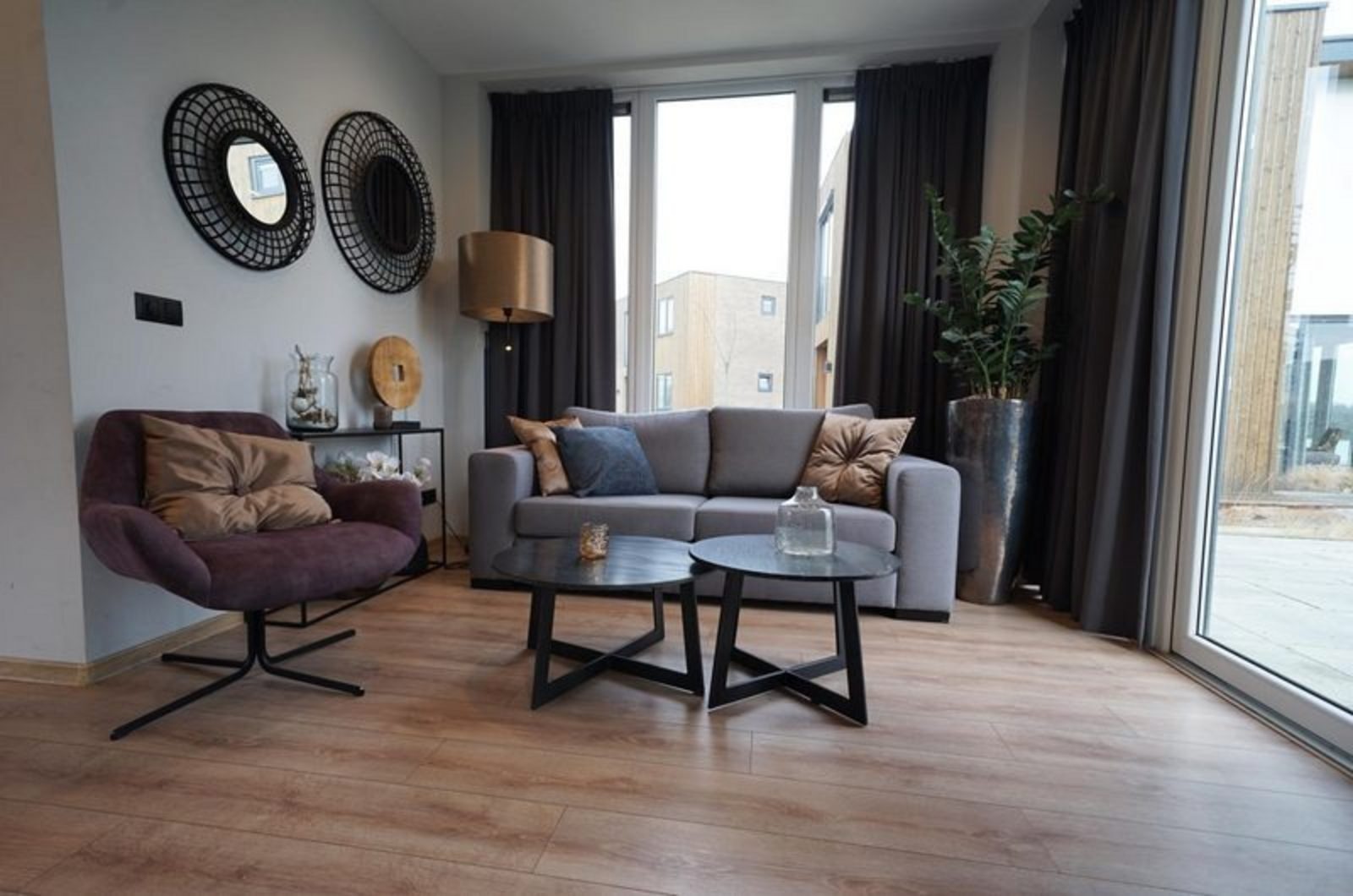 Diese großzügige, freistehende Villa bietet Platz für bis zu zehn Personen und verbindet hohen Komfort mit einer besonderen Lage am Hafen. Das helle Wohnzimmer ist stimmungsvoll eingerichtet mit einer bequemen Sitzecke, Smart-TV und einem Kamin – ein idealer Ort, um gemeinsam Zeit zu verbringen. Große Fensterfronten sorgen für viel Tageslicht und ein offenes Raumgefühl.