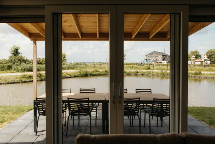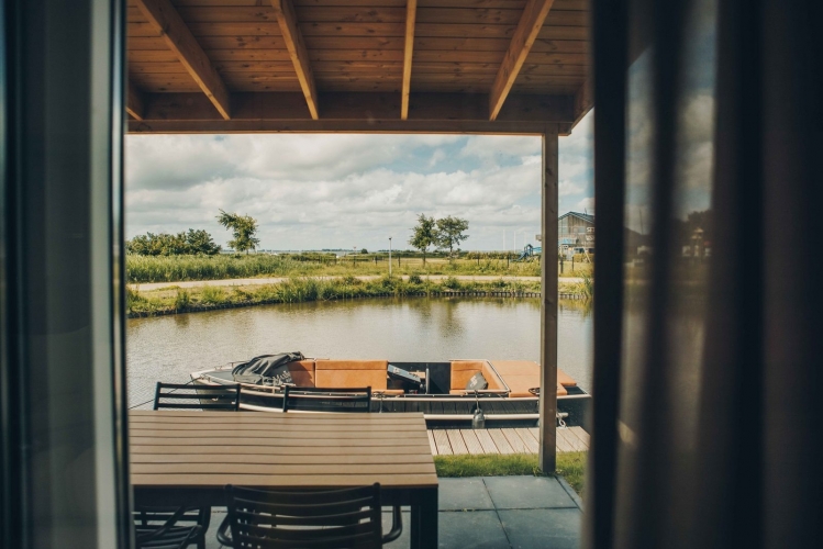 Von der überdachten Terrasse aus haben Sie einen herrlichen Blick auf das Wasser. In der Ferne sehen Sie die Segelschule von Heeg, wo täglich Aktivitäten stattfinden – ein lebendiges Panorama in ruhiger Umgebung.