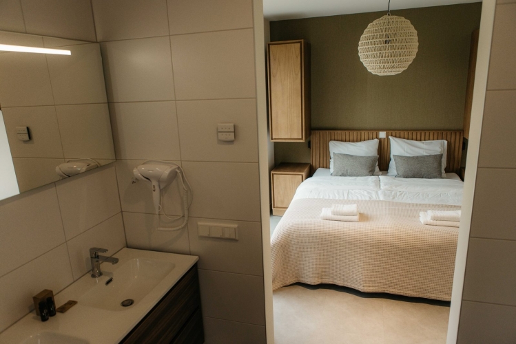 Die Villa verfügt über drei luxuriöse Badezimmer (eines davon mit Badewanne) sowie einen eigenen Wellnessbereich mit Sauna.