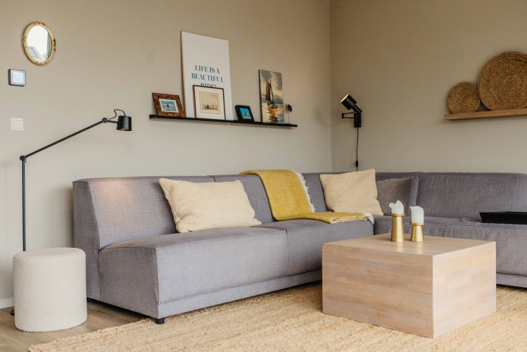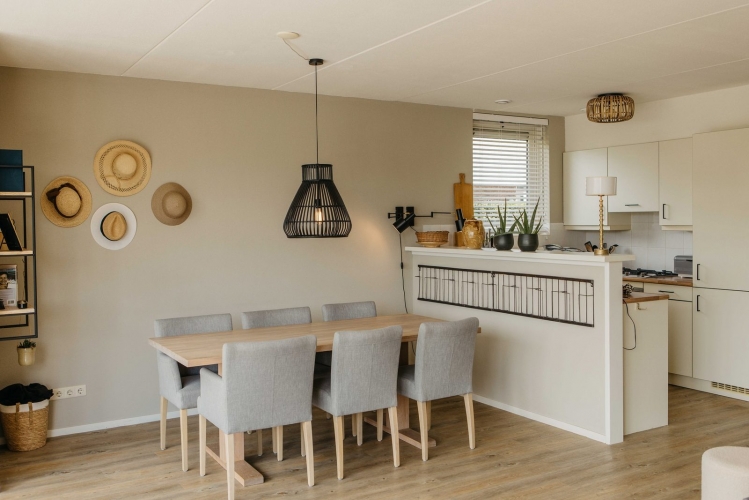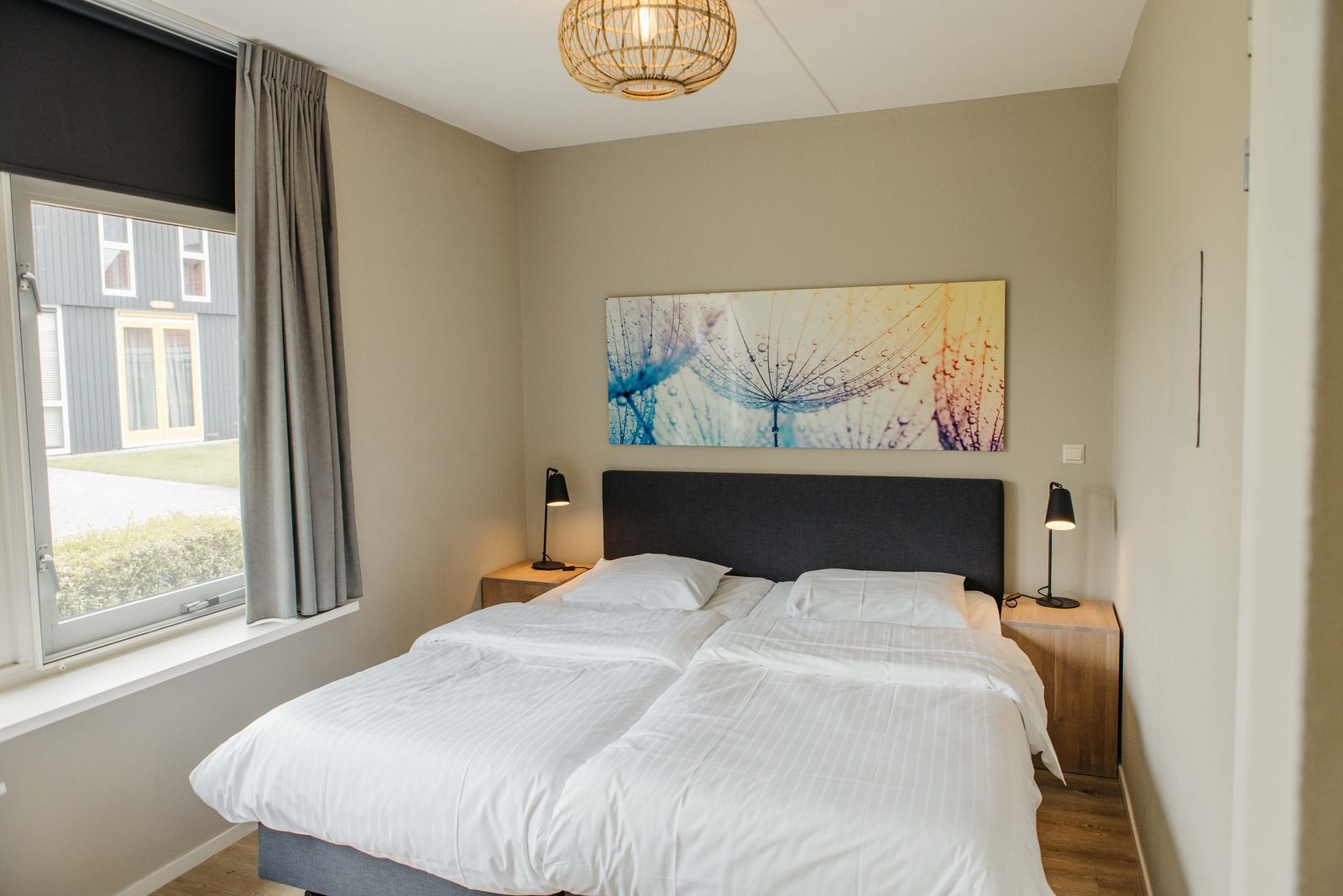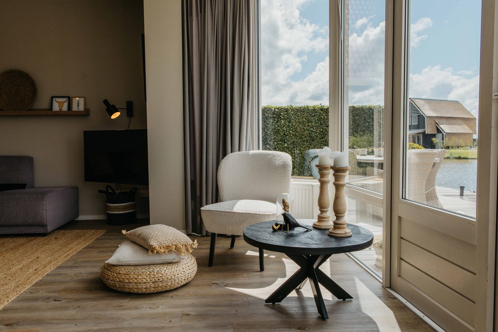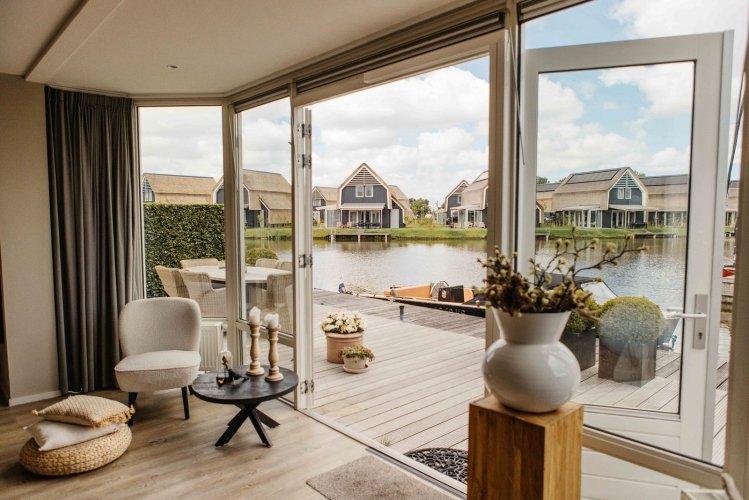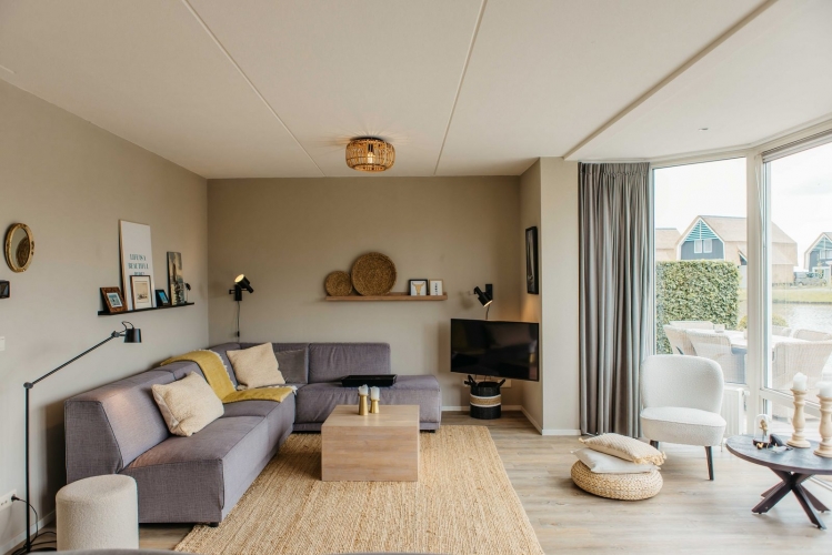 Diese stimmungsvolle Villa ist hell, großzügig und komfortabel eingerichtet. Große Fensterfronten bieten einen schönen Blick auf den Binnenhafen. Das Wohnzimmer verfügt über eine gemütliche Sitzecke und einen großen Esstisch – perfekt für gemeinsame Abendessen oder Spieleabende.