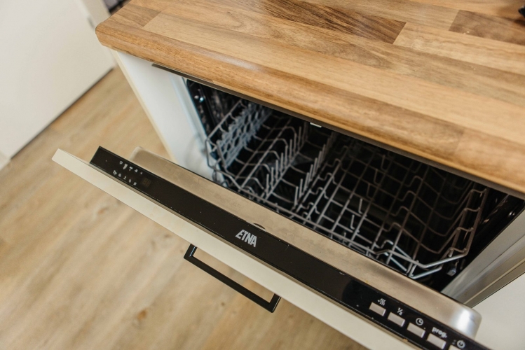 Die moderne Küche ist vollständig ausgestattet mit einem 4-Flammen-Gasherd, Kombi-Mikrowelle, Geschirrspüler, großem Kühlschrank mit Gefrierfach, Filterkaffeemaschine, Wasserkocher, Toaster und vollständigem Kücheninventar. Alles ist vorhanden, um selbst zu kochen oder Mahlzeiten unkompliziert zuzubereiten.