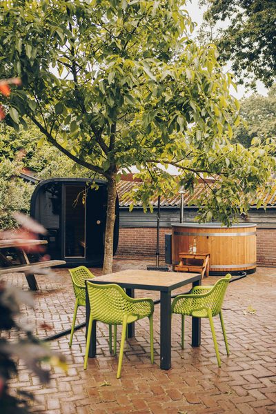 De buitenruimte biedt de perfecte aanvulling op het luxe verblijf, zodat je zowel binnen als buiten optimaal kunt genieten van je tijd samen.