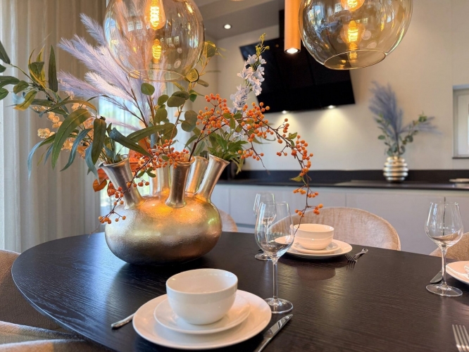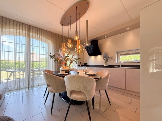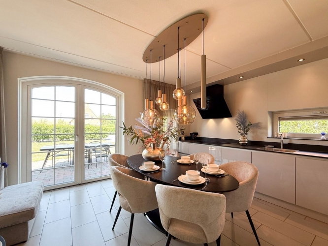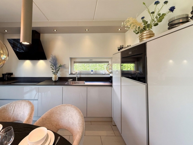 Diese großzügige Villa ist für einen entspannten Aufenthalt mit Familie oder Freunden konzipiert und liegt in ruhiger Lage direkt am Wasser. Das Wohnzimmer ist stimmungsvoll eingerichtet mit einer komfortablen Sitzecke, einem Esstisch und einem Smart-TV. Daran schließt sich die offene Küche an, die vollständig ausgestattet ist mit Induktionskochfeld, Kombi-Mikrowelle, Geschirrspüler, Nespresso-Krups-Kaffeemaschine, Kaffeemaschine, Wasserkocher sowie einer kompletten Küchenausstattung. Der Kühlschrank mit Gefrierfach bietet ausreichend Platz für längere Aufenthalte.