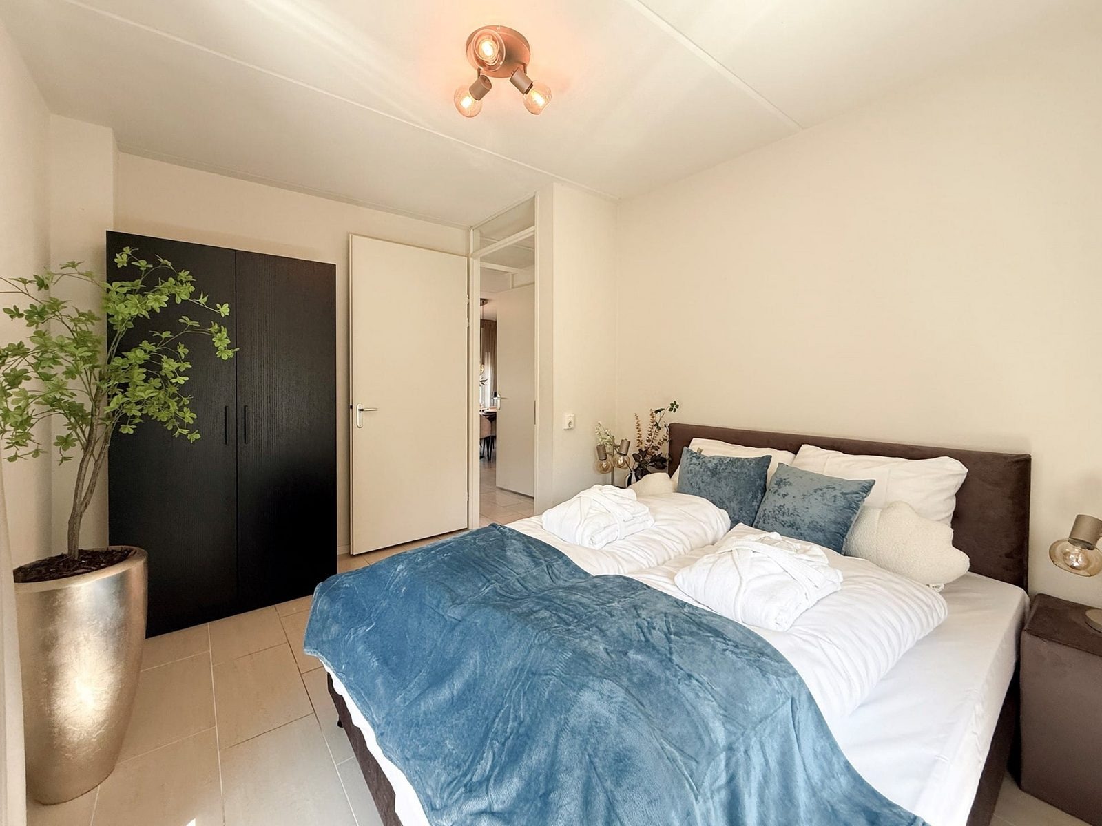 Die Villa verfügt über ein Badezimmer mit Dusche, Waschbecken und WC sowie über ein zusätzliches separates WC. Die Schlafzimmer sind mit komfortablen Boxspringbetten eingerichtet; Bettwäsche ist inklusive.