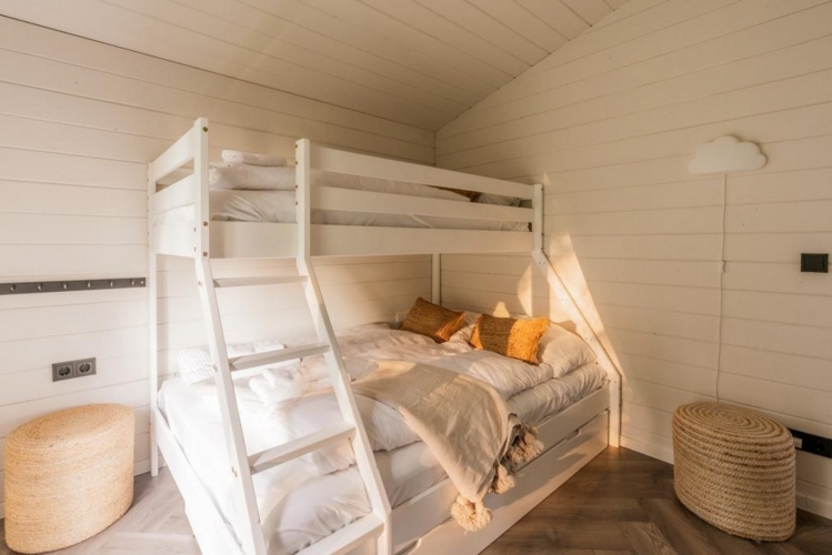 1 × Etagenbett mit unterem Doppelbett (160 × 200 cm) und oberem Einzelbett (90 × 200 cm)