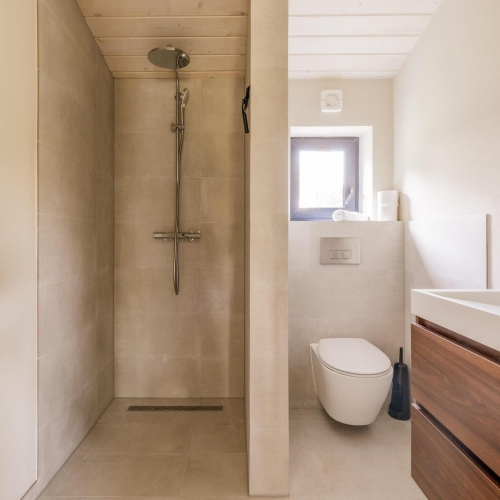 Die Küche ist vollständig ausgestattet und eignet sich sowohl für einfache Mahlzeiten als auch für ausgiebiges Kochen. Zur Ausstattung gehören unter anderem eine Nespresso-Maschine mit Milchaufschäumer, Toaster, Geschirrspüler, Backofen, Kombi-Mikrowelle und eine Kühl-Gefrierkombination. Das Badezimmer ist modern gestaltet und verfügt über eine Regendusche, ein Waschbecken und ein WC. Bei Ankunft sind die Betten bezogen; pro Person liegt ein Handtuchset bereit. Die Lodge ist haustierfrei und bietet kostenloses WLAN sowie Parkmöglichkeiten direkt an der Unterkunft.