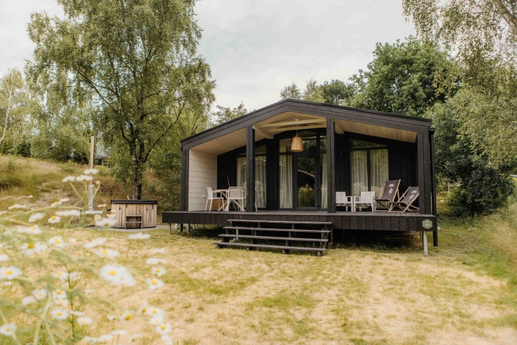 Nachhaltige Lodge mit Hot Tub, Veranda und freiem Blick in der hügeligen Landschaft von Wilsum