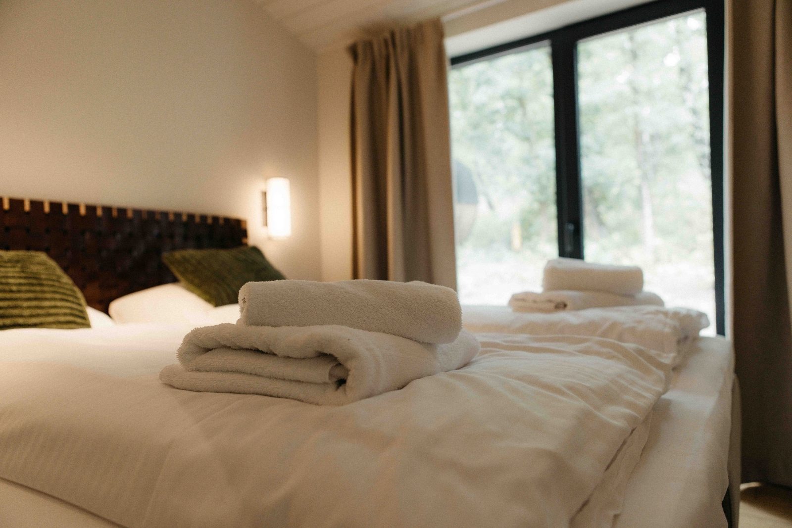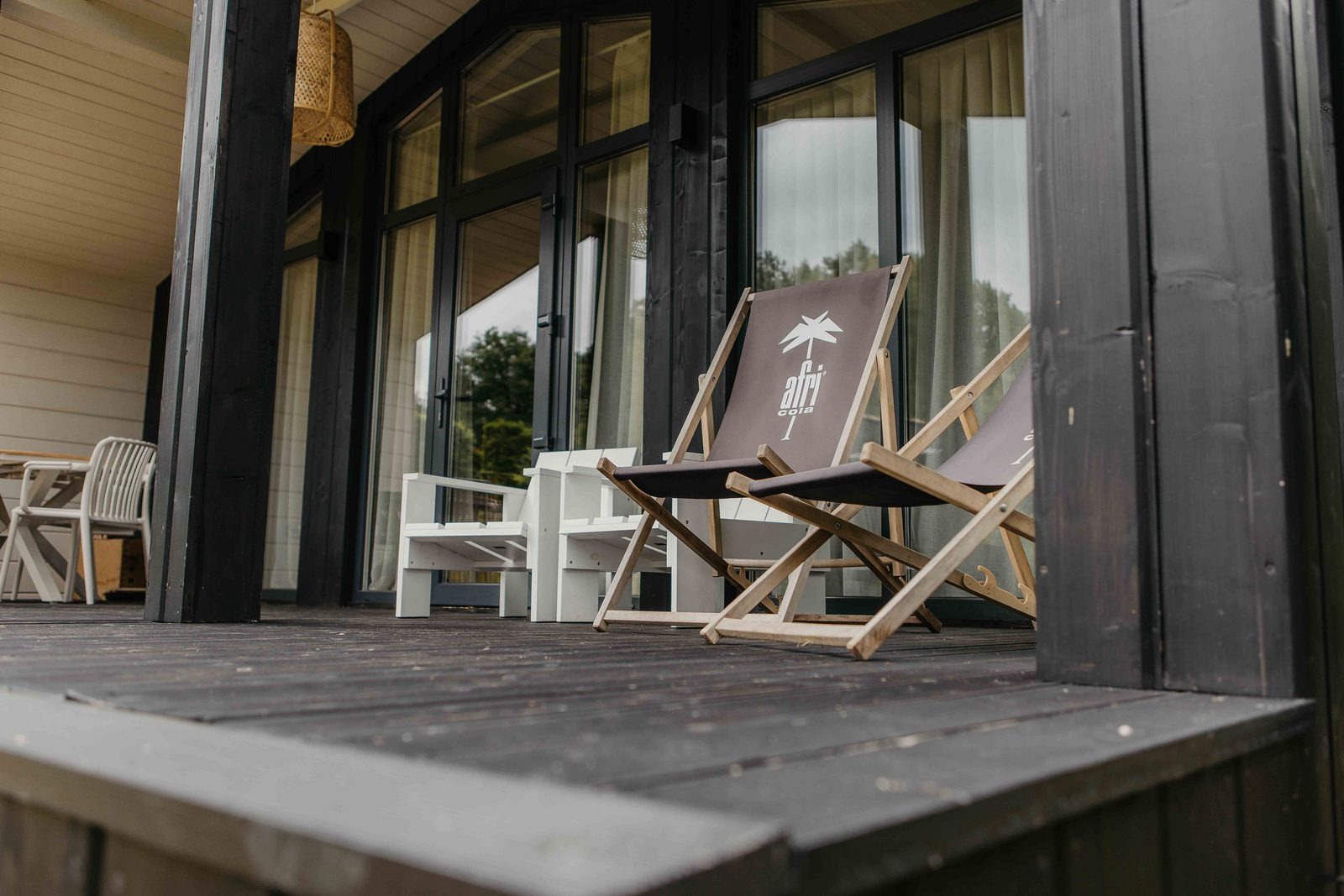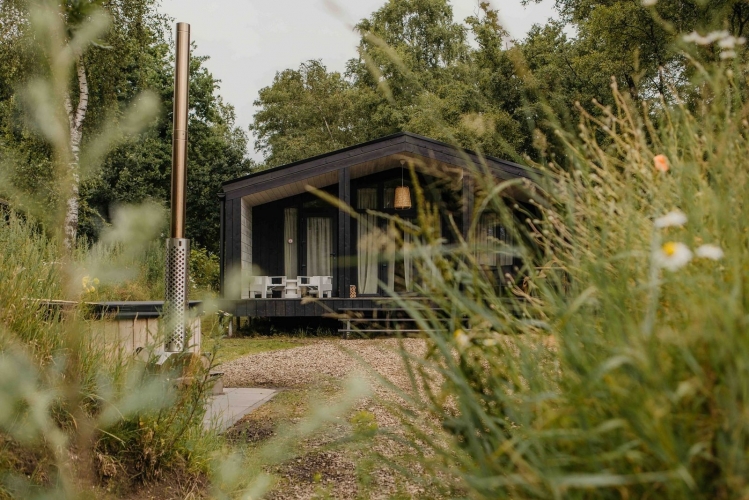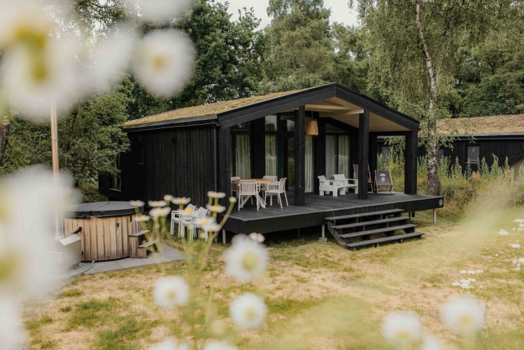 Rund um die Lodge steht Ruhe und Natur im Mittelpunkt. Der private Hot Tub liegt geschützt zwischen den Bäumen und bietet viel Privatsphäre zum Entspannen – zu jeder Tageszeit. Die großzügige Holzveranda ist teilweise überdacht und mit Loungeset sowie Esstisch und Stühlen ausgestattet. Dank der sonnigen Lage und der Abendsonne ist dies ein idealer Ort, um draußen zu sitzen. Über nahegelegene Wanderwege gelangen Sie direkt von der Lodge in die Natur.