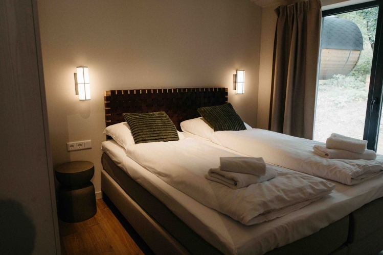 Diese ökologische Lodge bietet einen komfortablen und ruhigen Aufenthalt mitten im Grünen. Das begrünte Sedumdach verleiht der Unterkunft eine natürliche Ausstrahlung und trägt zu einem angenehmen Raumklima bei. Dank der geschützten Lage und des freien Blicks auf Wald und Felder genießen Sie hier Privatsphäre und Entspannung.