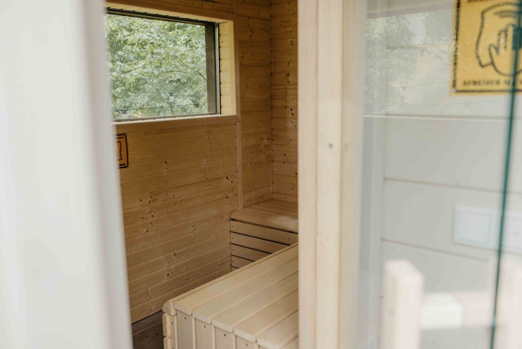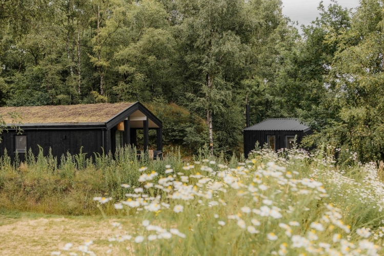Diese ökologische Lodge ist für Gäste konzipiert, die in der Natur entspannen möchten, ohne auf Komfort zu verzichten. Dank des begrünten Sedumdachs besitzt die Unterkunft eine natürliche Ausstrahlung und liegt geschützt zwischen Wald und sanft hügeliger Landschaft. Große Fenster sorgen für viel Tageslicht und einen freien Blick auf die Umgebung.