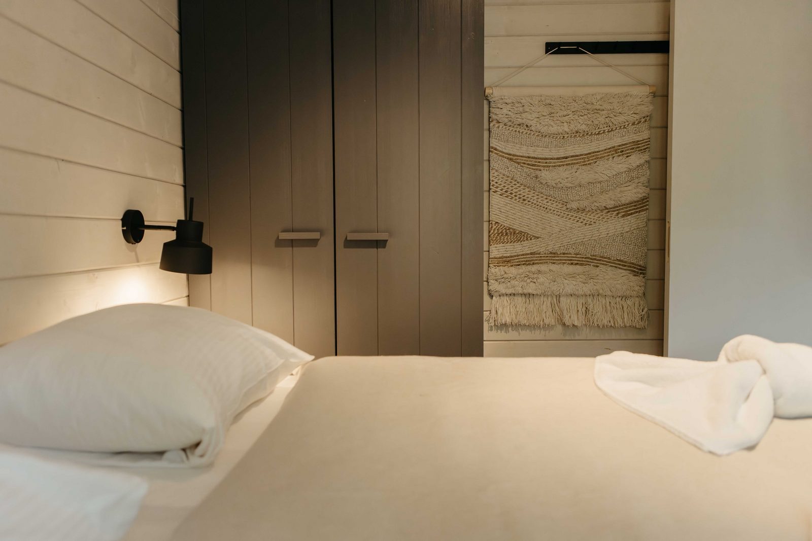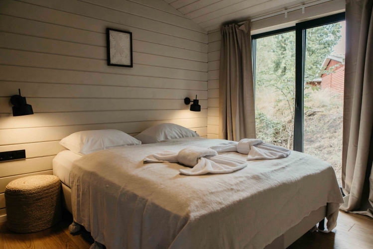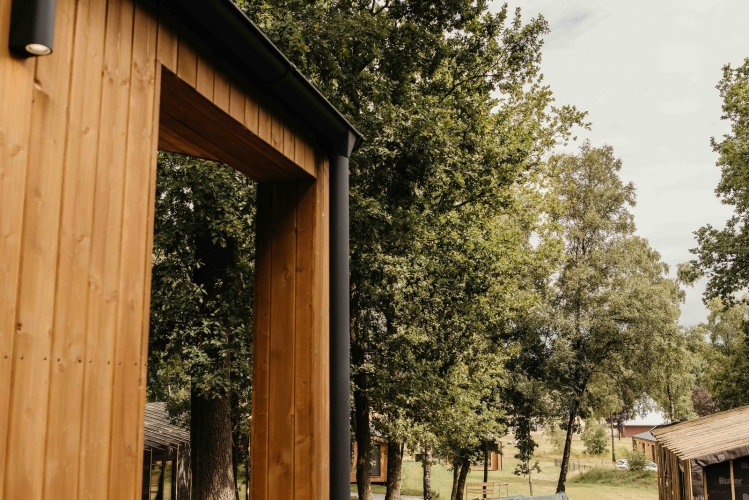 Lodge mit privater Sauna und geschützter Lage im Grünen