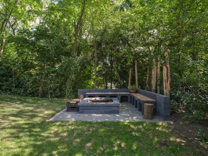 De zitlounge met buitenhaard is de perfecte privé relaxplek die je vakantiehuis helemaal compleet maakt. Hier kun je, zowel overdag als 's avonds, genieten van een sfeervolle omgeving in de buitenlucht. Of het nu is om te ontspannen met een goed boek, een drankje met vrienden of om gezellig bij het vuur te zitten tijdens een frisse avond, de buitenhaard zorgt voor warmte en een knusse sfeer. Deze luxe toevoeging biedt het ultieme gevoel van comfort en maakt van elke avond een speciaal moment.