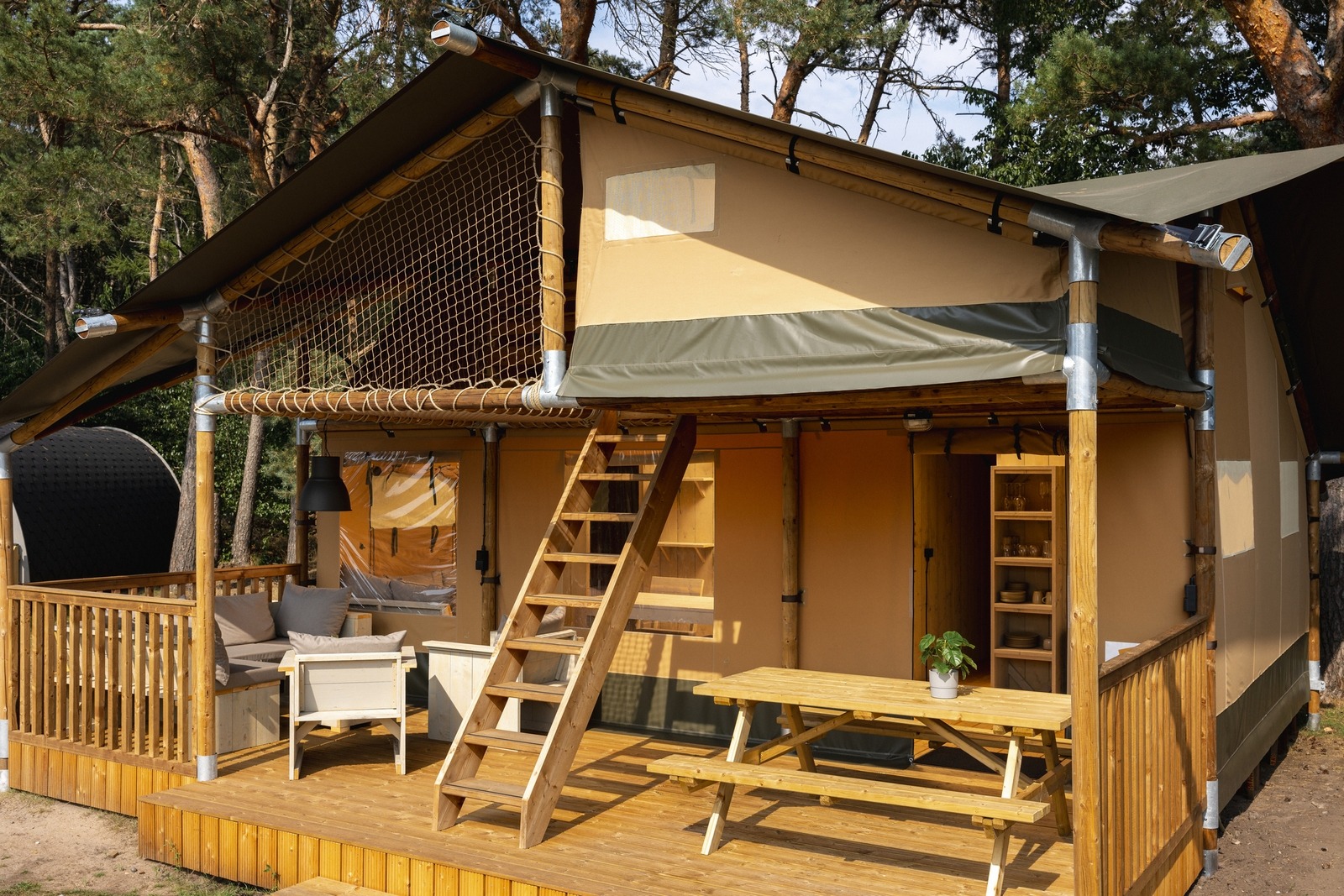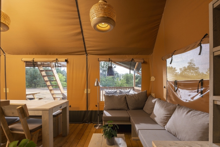 Entdecken Sie den Charme des Campings mit dem Komfort von zu Hause in einem stimmungsvollen Safarizelt. Inmitten einer naturnahen Umgebung bietet diese Unterkunft ein einzigartiges Erlebnis für die ganze Familie.