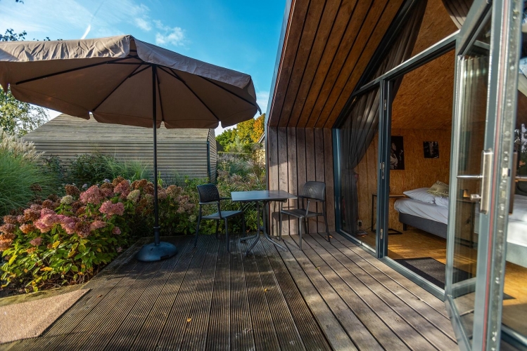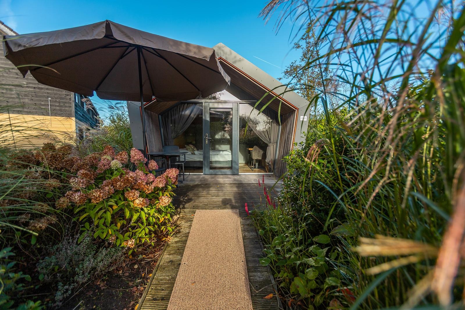 Im wasserreichen Wanneperveen steht dieses kompakte Tiny House für einen Aufenthalt zu zweit.
