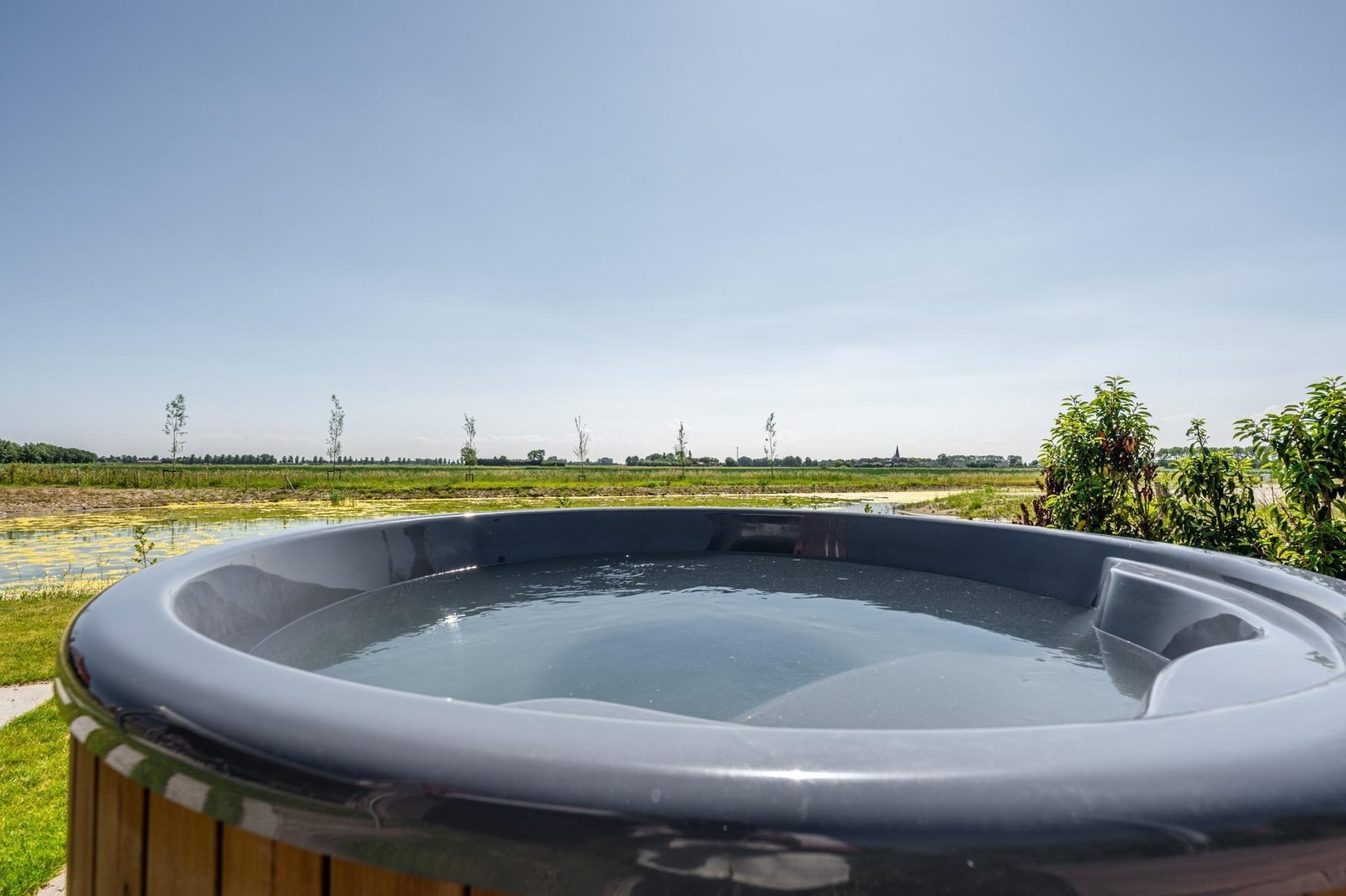 Draußen erleben Sie echtes Outdoor-Feeling. Auf der großzügigen Terrasse mit komfortablen Möbeln können Sie stundenlang essen, lesen oder in der Sonne entspannen. Der grüne Garten bietet viel Privatsphäre und Platz – ideal für Kinder oder um einfach zur Ruhe zu kommen. Und natürlich wartet der Hot Tub auf lange Abende unter dem Sternenhimmel.