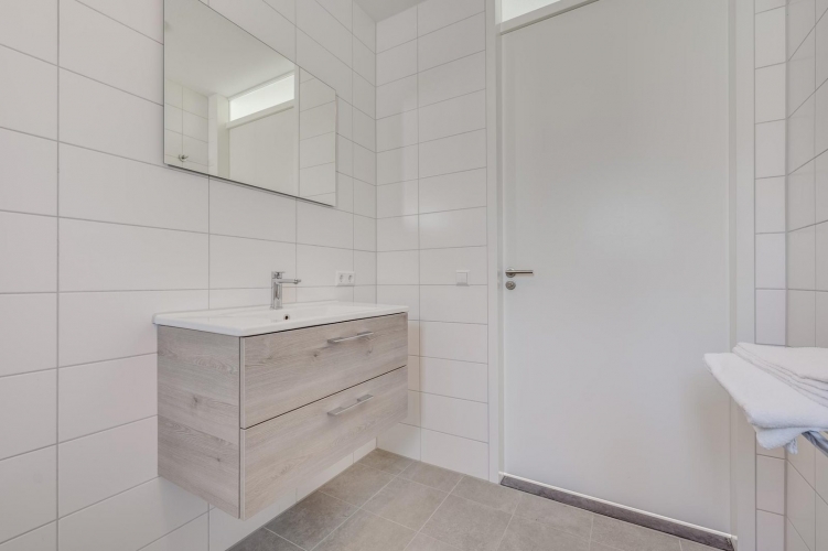 Das Badezimmer ist praktisch eingerichtet und verfügt über eine Dusche, ein Waschbecken und ein WC. Die Schlafzimmer sind mit komfortablen Boxspringbetten ausgestattet; Bettwäsche ist inklusive.