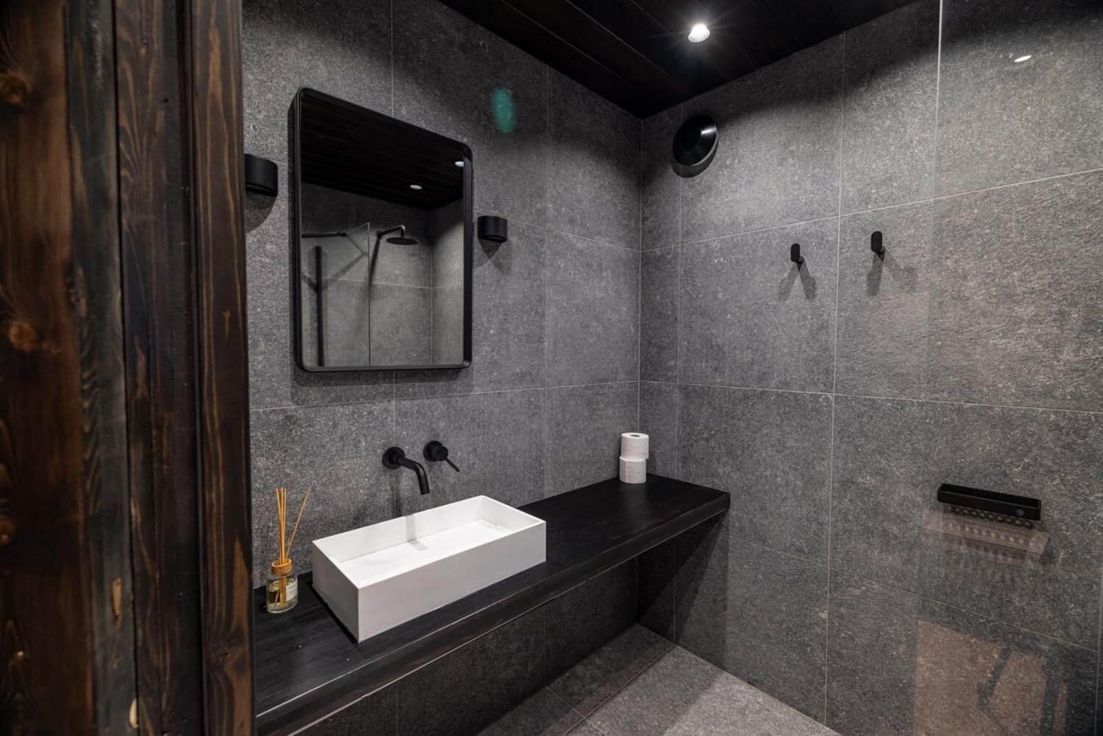Das Badezimmer ist modern gestaltet und verfügt über eine Dusche, ein Waschbecken und ein WC. Bei Ankunft sind die Betten bezogen und pro Person liegt ein Handtuchset bereit. Kostenloses WLAN sowie Parkmöglichkeiten direkt an der Cabin sind inklusive.