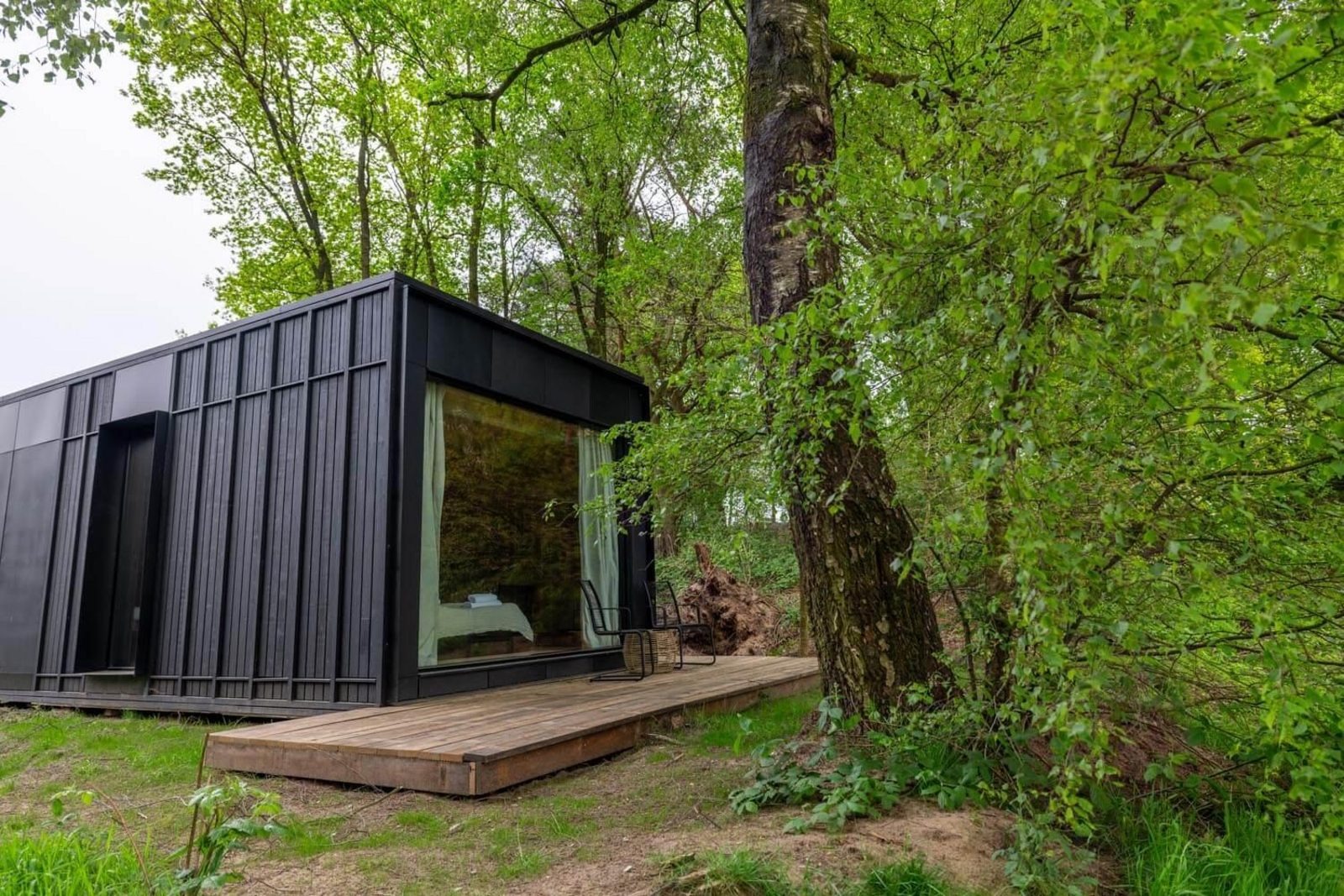 Die Cabin befindet sich auf einem weitläufig angelegten Gelände mit natürlicher Ausstrahlung. Die Einrichtungen sind gut erreichbar, während die unmittelbare Umgebung rund um die Cabin ruhig und grün bleibt. Das Konzept bietet eine angenehme Balance zwischen Privatsphäre und Komfort.